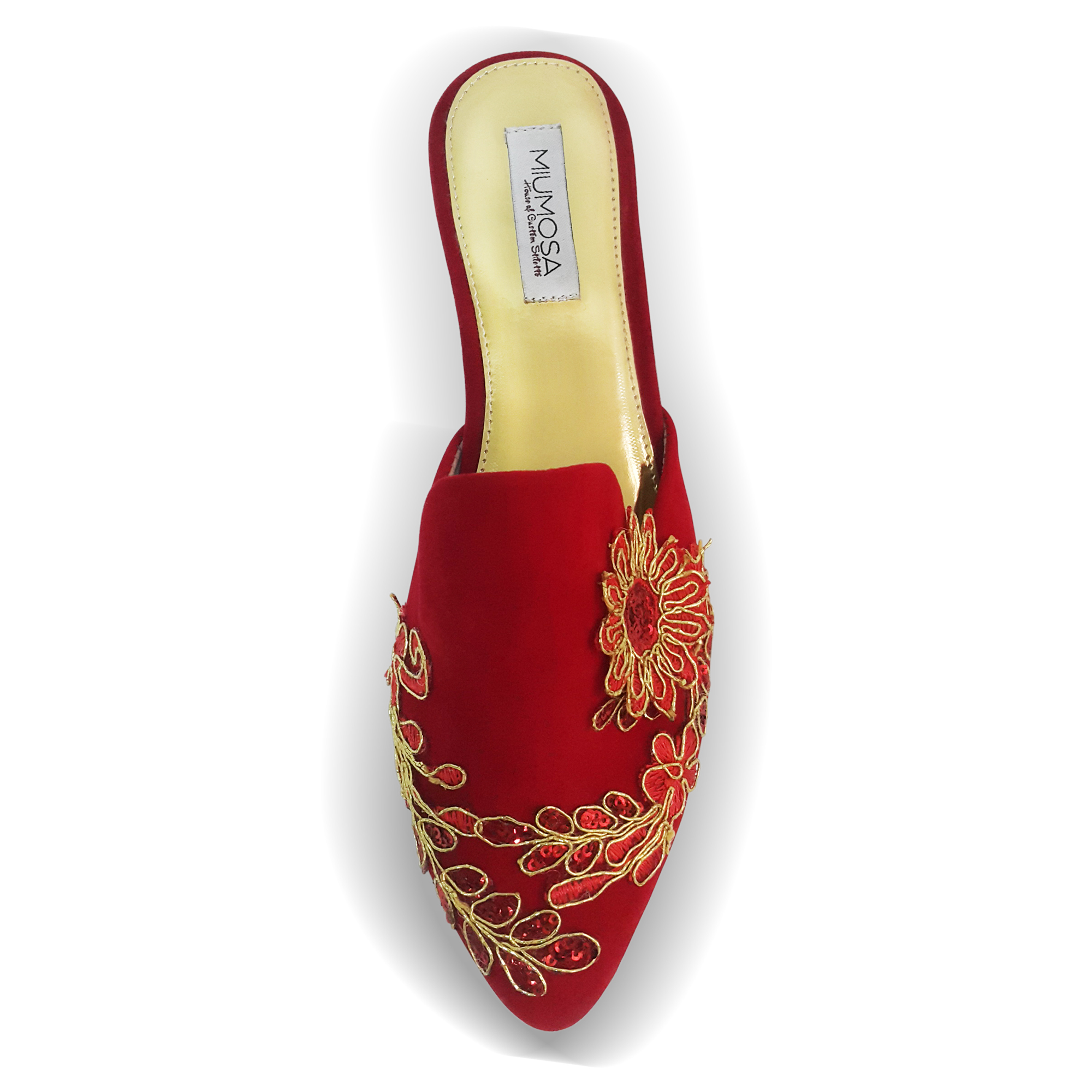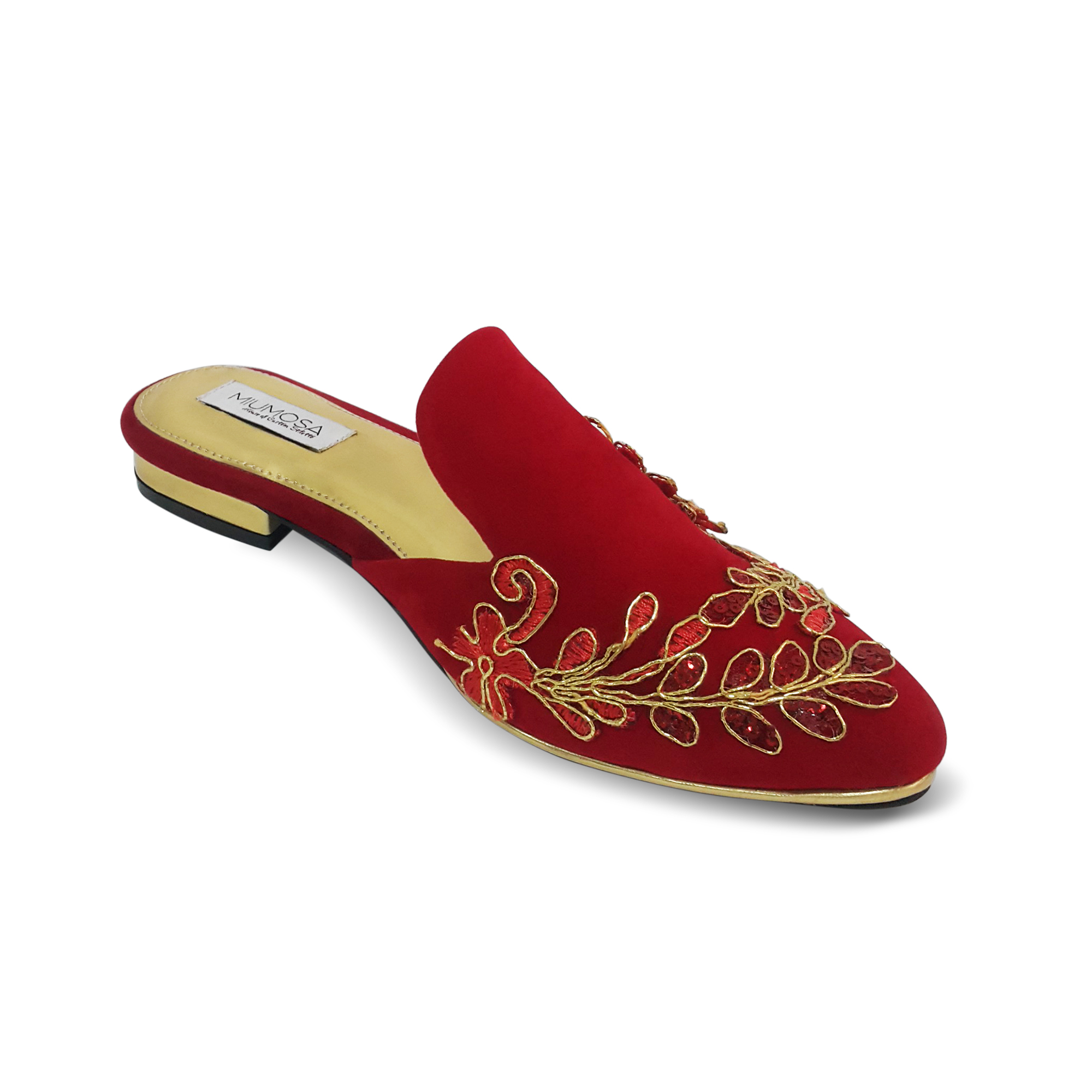 Upper: Delicate Velvet with embroidery leaves motifs.