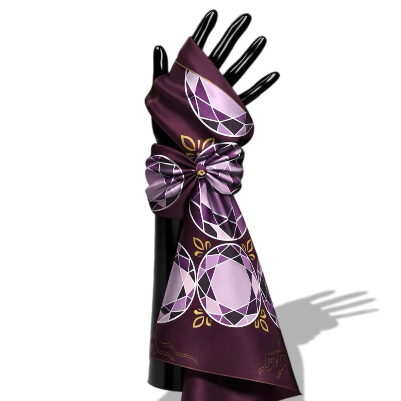 The scarf is conceived as a portable field of refraction—where mythology, geology, and feminine interiority intersect through the discipline of contemporary textile design.