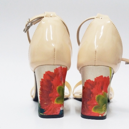 Block heels are the easy heel for all-day wear, also suitable for beginners, without feeling itchy at all. When sketching this pattern, my mind-blowing into spring, the happiest moment in our lives. When flowers are blooms, full of sweet days and roses. I love chrysanths, reflects joy, optimism, positive energy, perfections, like Miumosa Scrubs. Upper: chrysanths the spring's painting Sole: leather. Lining: leather Heel measures 80mm Made in Indonesia
