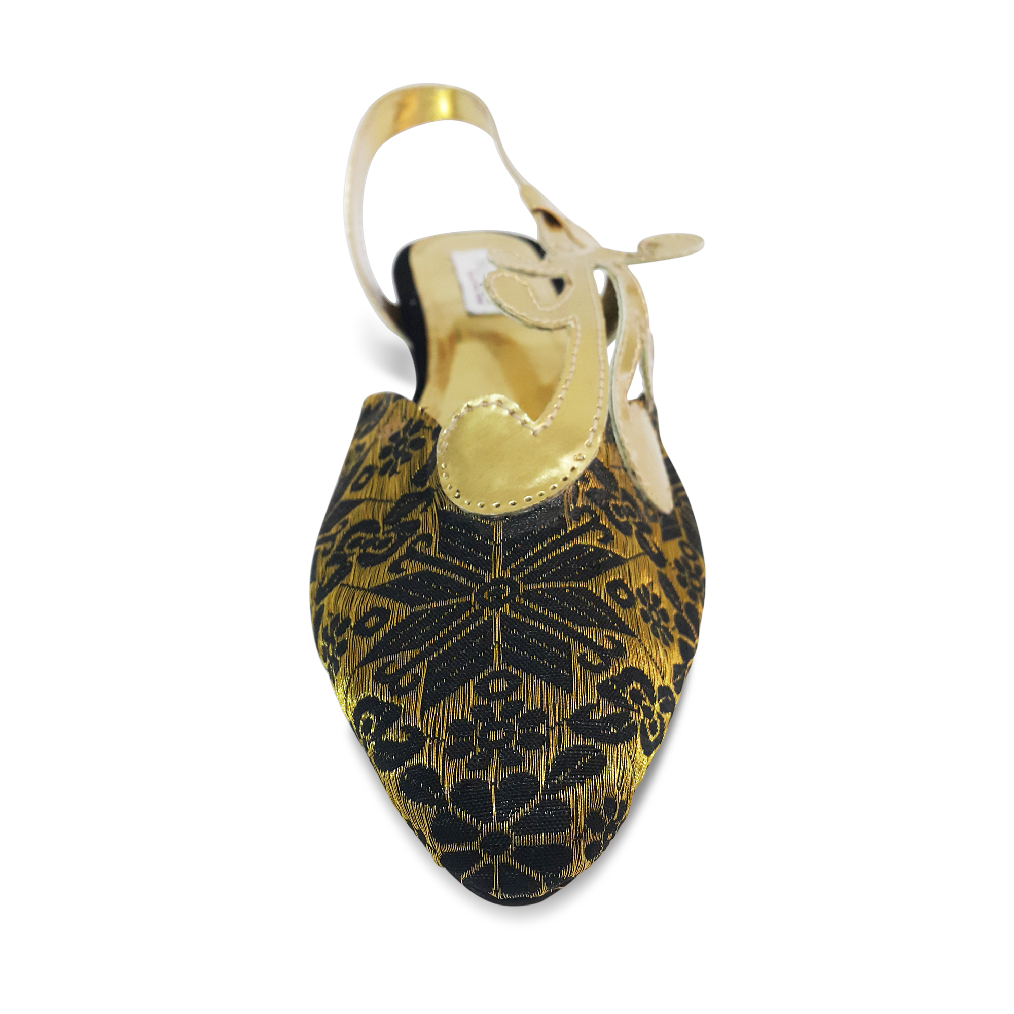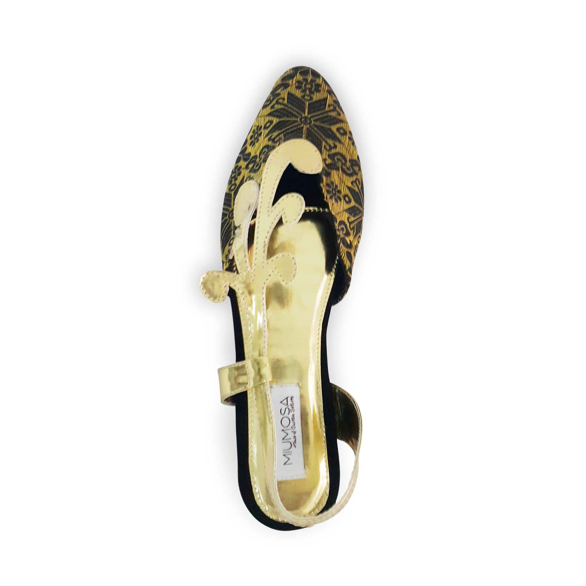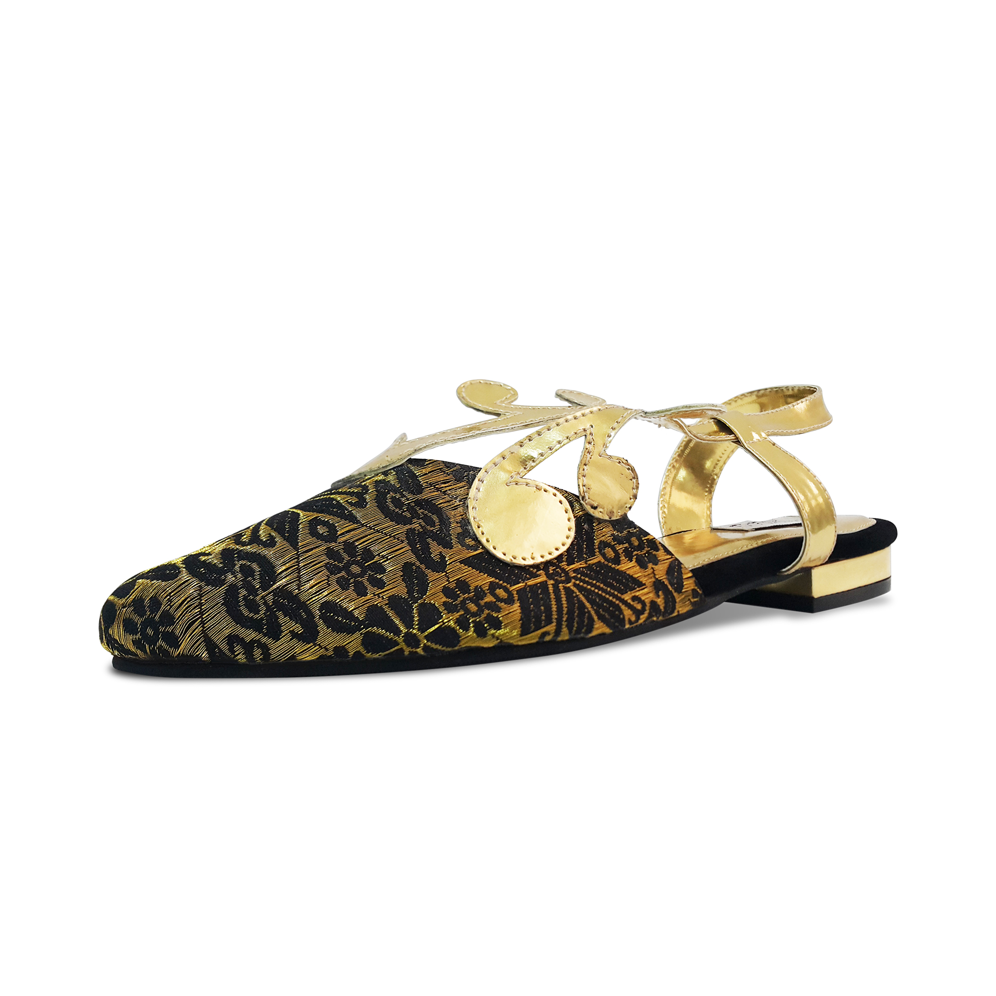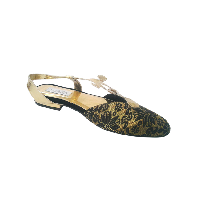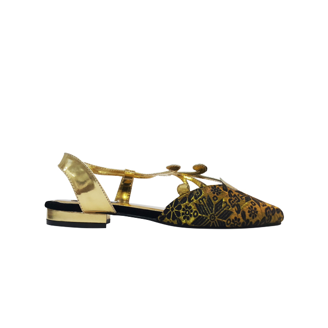 Cendana. Flat. Upper: Songket Palembang (Palembang Gold Sewings Woven). Lining: Soft Leather. Sole: Rubber. Heels: 2cm. made in Indonesia