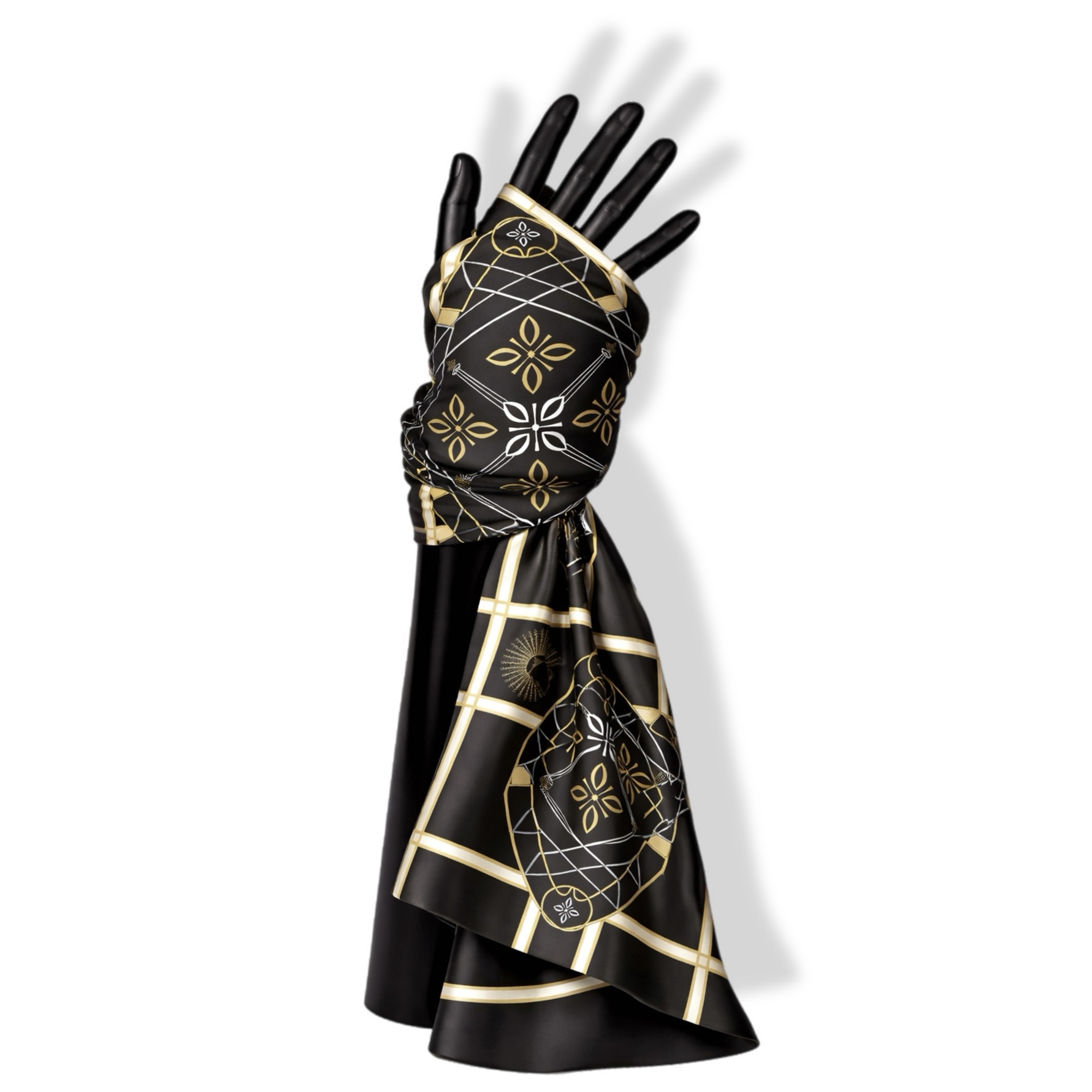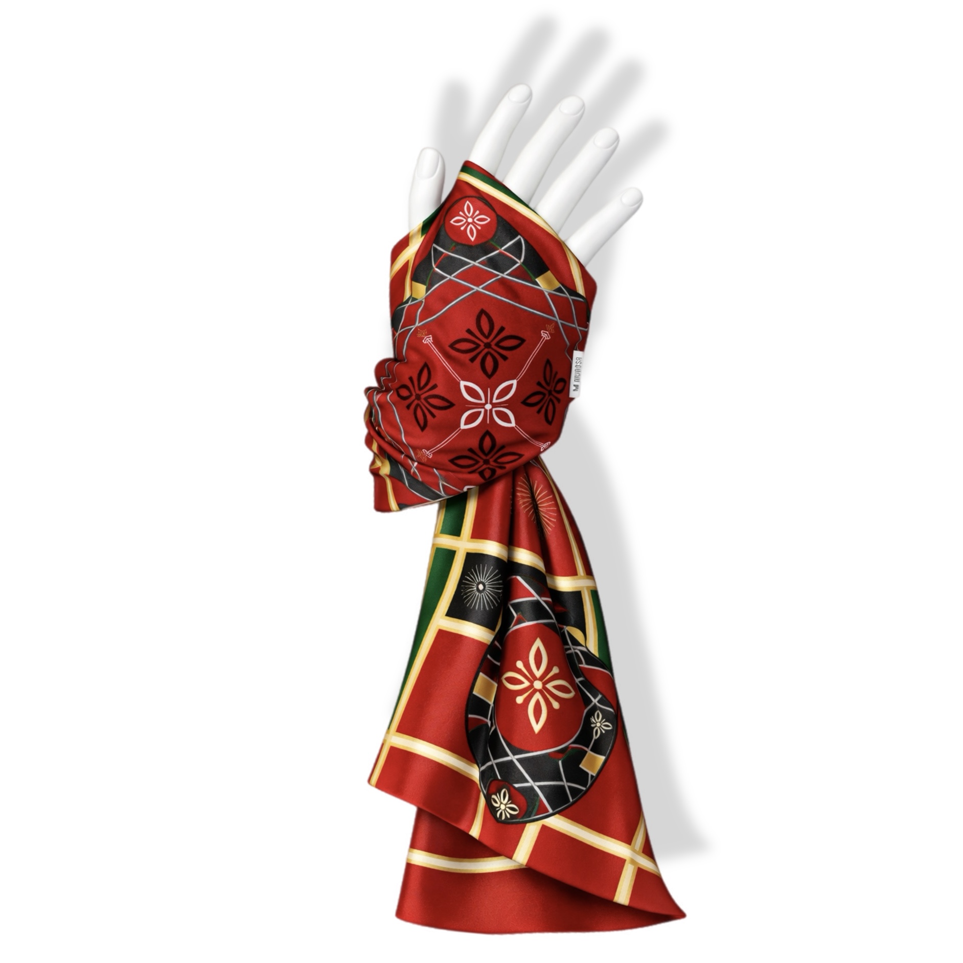 Budaya Silk Scarf Series. 498 Jakarta Edition. Jakarta is a city where history and culture pulse beneath the surface of its modern skyline, with the iconic Monas standing tall as a symbol of national pride and resilience. Beneath the golden flame, the intricate art of kembang kelapa adorns traditional celebrations—its blooming form a symbol of hope and enduring spirit. On the streets, a pair of Ondel-ondel dances to the rhythm of tanjidor music, echoing the spirit of ancient guardians in a vibrant, living tradition. Budaya Silk Scarf is an exclusive series that celebrates the spirit of Indonesia’s 38 provinces, with each design telling a unique story — a visual symphony of culture, identity, and enduring beauty. Satin Silk 70 x 70 cm | Variant: White, Black, Blue, Green