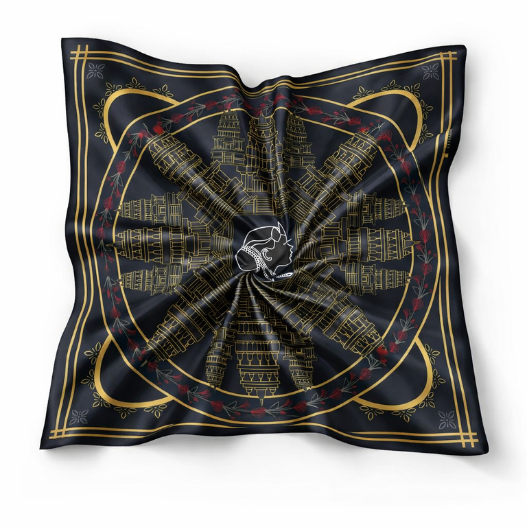 Roro Jonggrang is a Javanese legend tied to the Prambanan Temple complex. It tells of a princess whose beauty captivated the warrior Bandung Bondowoso. To avoid marrying him, she challenged him to build a thousand temples in one night. When he nearly succeeded with supernatural help, she deceived him by creating a false dawn. Realizing the trick, Bandung Bondowoso cursed her into stone, making her the final, thousandth statue. | The legend reflects themes of integrity, consequence, and the tension between power and resistance. It serves as a reminder that deception, even when born from fear or self-preservation, can bring unintended and irreversible outcomes. | This is about a Love Story. Royalty. Anger. Family Worship. Dignity. Powerful Woman. Betrayal. | Satin Silk | 70 x 70 cm | Varian Color Black, White, Dark Grey, Gold Made in Indonesia