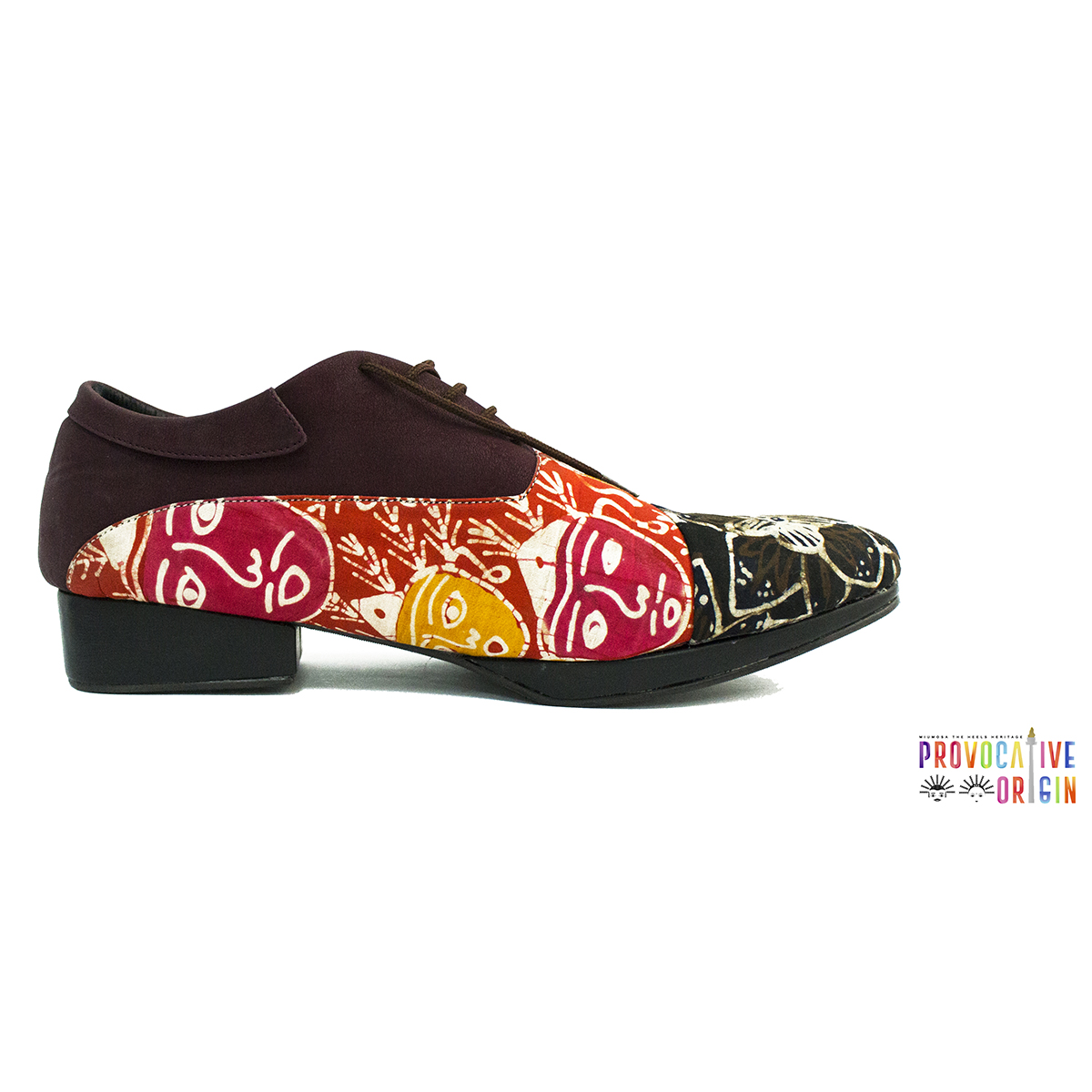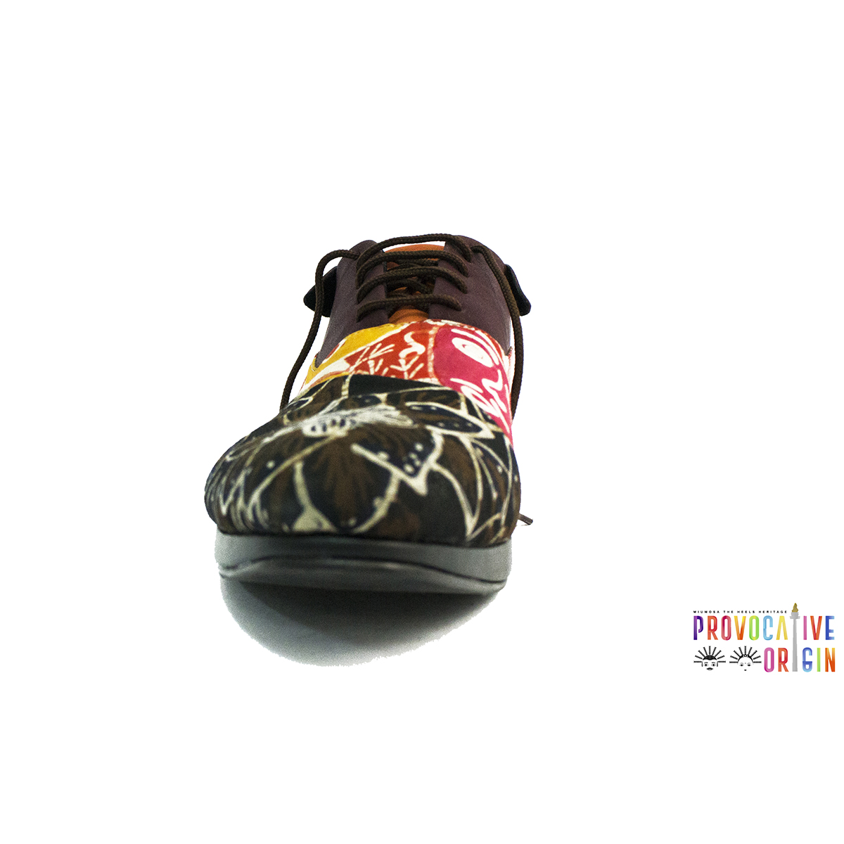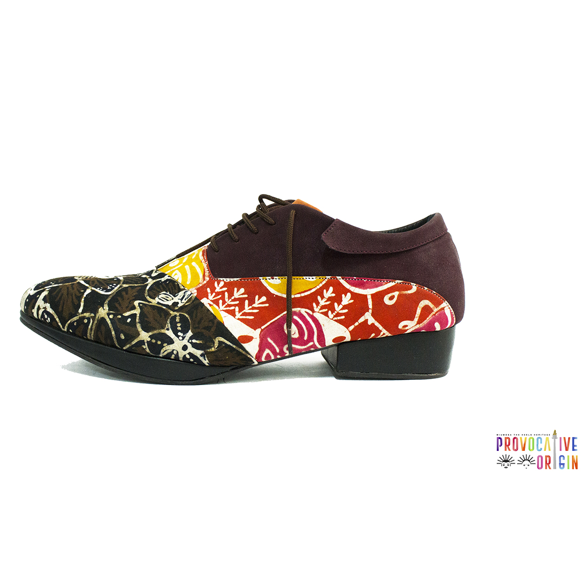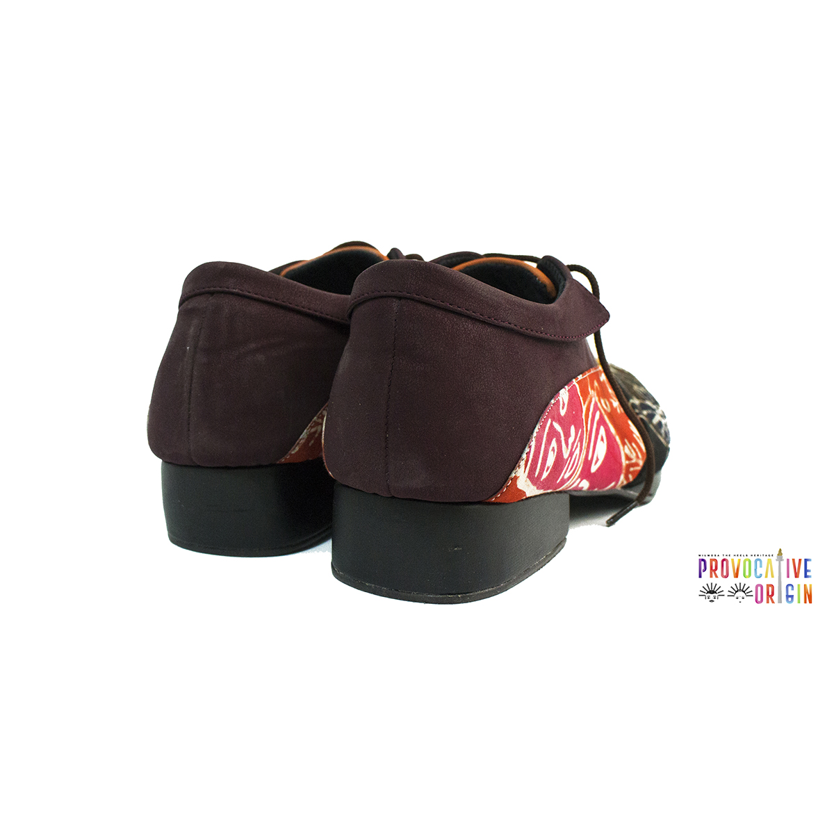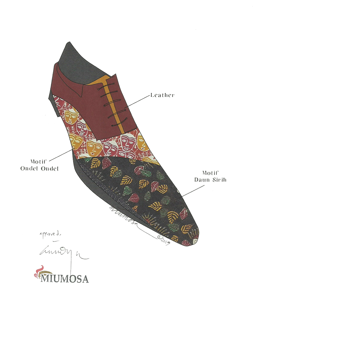 Official Shoe for Abang None Jakarta- Kepulauan Seribu 2019. There is a pleasure when making this shoe. There is a rapture in each contour, two faces of batik heritage where none intrudes, by the deep passion, and strength at its roar. Details: Ondel-Ondel Puppets Motifs Tarum Leaf (a typical flora of Jakarta) motif Delicate Suede for Lining: soft leather Sole: Leather made in Indonesia Made in Indonesia