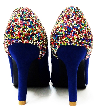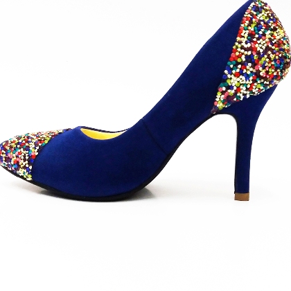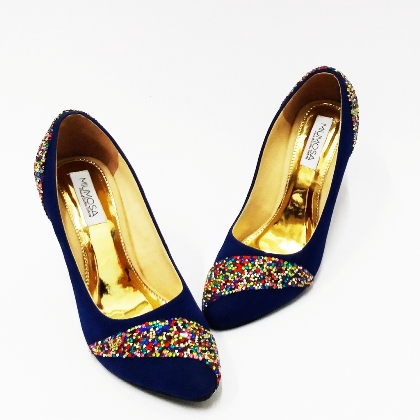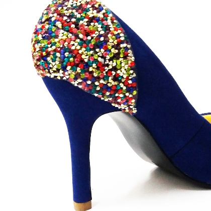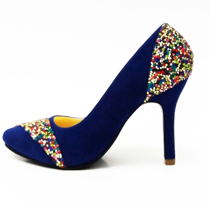 crystal clear. There are rainbow color and its sparks when light spots. Upper: 100% soft suede, beads embelished. Sole: leather. Lining: suede Heel measures 90mm Made in Indonesia