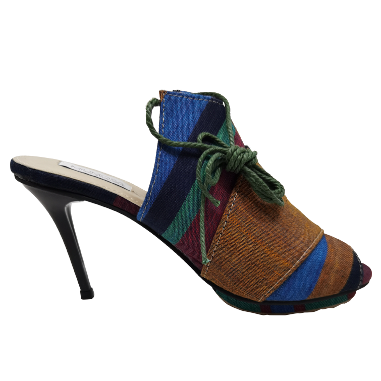 Preview the New Arrival Kartini, inspired by the women who led empowerment in ancient Java history. Made by Jepara Weaving, Tenun Jepara with geometric vibrant color | With meticulous detail and architectural finesse, each silhouette is a masterpiece, engineered to command attention the moment you step into the room | Upper: Lurik Jepara Weaving | Lining: Synthetic Leather | Heels: Stiletto 9 cm | Size 36 to 42