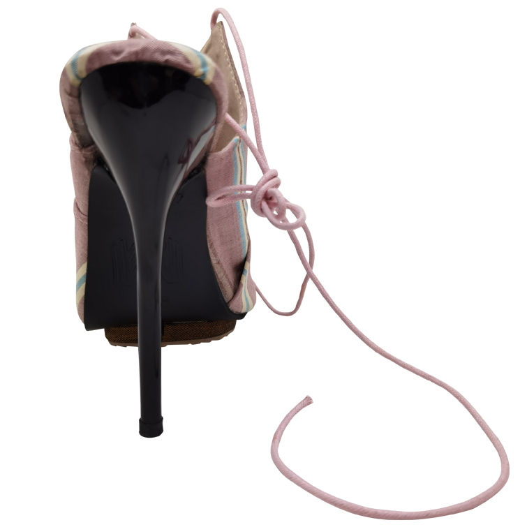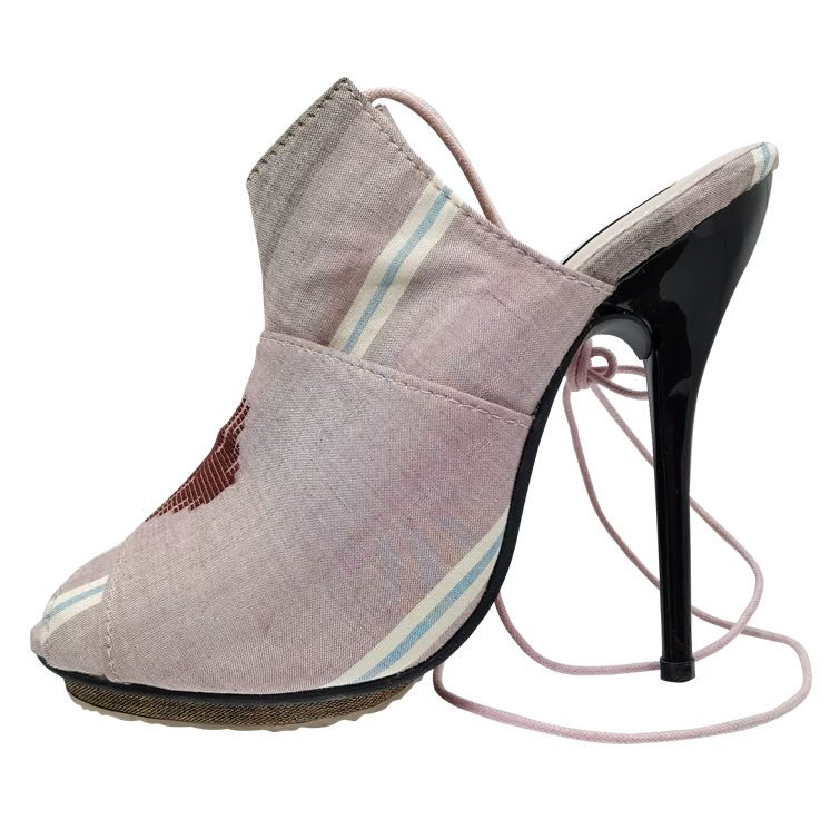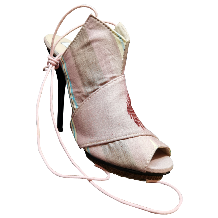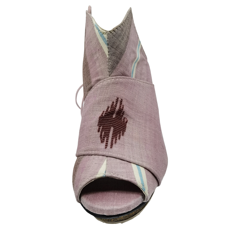 Tabba, as the name given, was taken from East Kalimantan Sarong Weaving. Spotted with soft colors, the pink and blue take on the opposite colors with traditional weaving | With meticulous detail and architectural finesse, each silhouette is a masterpiece, engineered to command attention the moment you step into the room | Upper: Tabba Weaving | Lining: Synthetic Leather | Heels: Stiletto 12 cm | Size 36 to 42