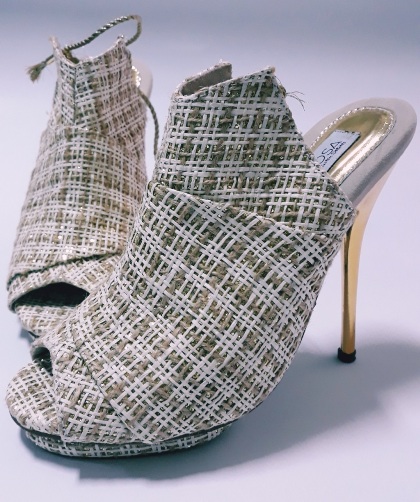 Heels Heritage Collection, Azerbaijan. Few months ago, an email hit my desk. It was an order of one hundred and fifty pairs of shoes made from eco-materials and if possible can be used by vegans. Difficult challenge and we decided to try. So, we go back to the workshop, Do experiments. Sarita was made by dried thatch braids, tweed, and glittering canvas, all together in tailored weaving. Intense increasing when the braids must be applied to a twelve-centimeter heel. Saritta, the name given. And become one of the Heels Heritage ‘s collections. Eco-friendly, save earth material, can be used to Vegan. Upper: Dried thatch braids, tweed, and glittering canvas, all together in tailored weaving Sole: leather. Lining: leather Heel measures 120mm Made in Indonesia